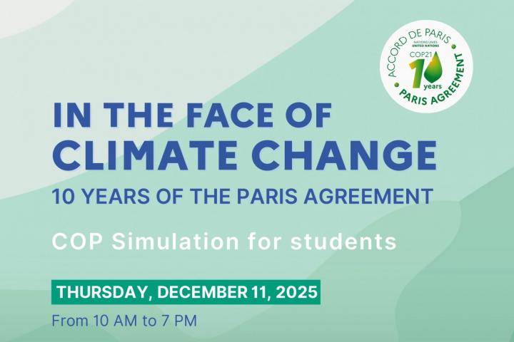U této příležitosti organizuje ambasáda simulaci konference COP a zve studenty z celé země k účasti. V pozdějších hodinách se uskuteční veřejná debata s názvem „Paříž, Belém... Co bude dál?“. Několik účastníků bude vybráno, aby zastupovali hlas mládeže a podělili se o své vize a závazky. Cílem této iniciativy je dát mladým lidem příležitost vyjádřit se a přímo se zapojit.
