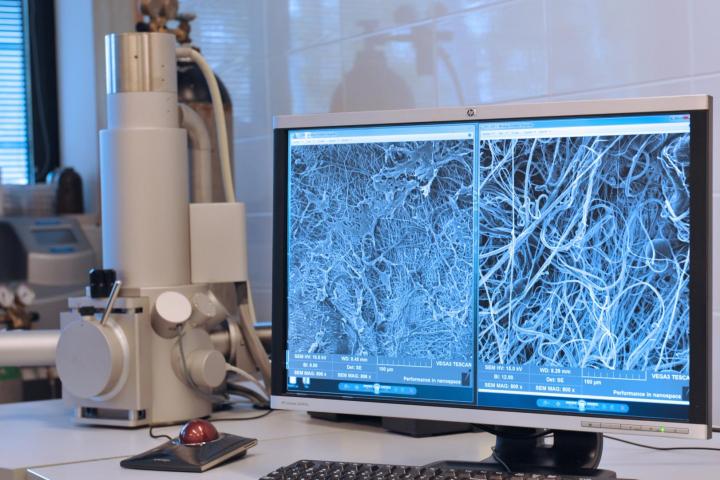 V další části projektu byl kladen důraz na zachycení molekul, které způsobí okem patrnou změnu barvy vzorků připravených na bázi nylonových vláken s přídavkem barviva. Ty podle zjištění odborníků z UCEEB umožňují signalizovat a detekovat kyselé vzdušné i vodné prostředí tím, že dojde k jejich zmodrání.
