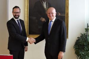 Rektor ČVUT v Praze doc. Vojtěch Petráček se dnes setkal se Sebastianem Gemkowem, který zastává v saské státní vládě pozici ministra pro vědu na Ministerstvu pro vědu, kulturu a turismus. Společně diskutovali o česko-německé spolupráci v oblasti vědy a výzkumu podpořené nedávnou návštěvou německého prezidenta Franka-Waltera Steinmeiera, který na ČVUT zavítal do česko-německého centra excelence RICAIP. S tím souviselo i projednávané téma postoje obou zemí k evropskému klimatickému plánu.